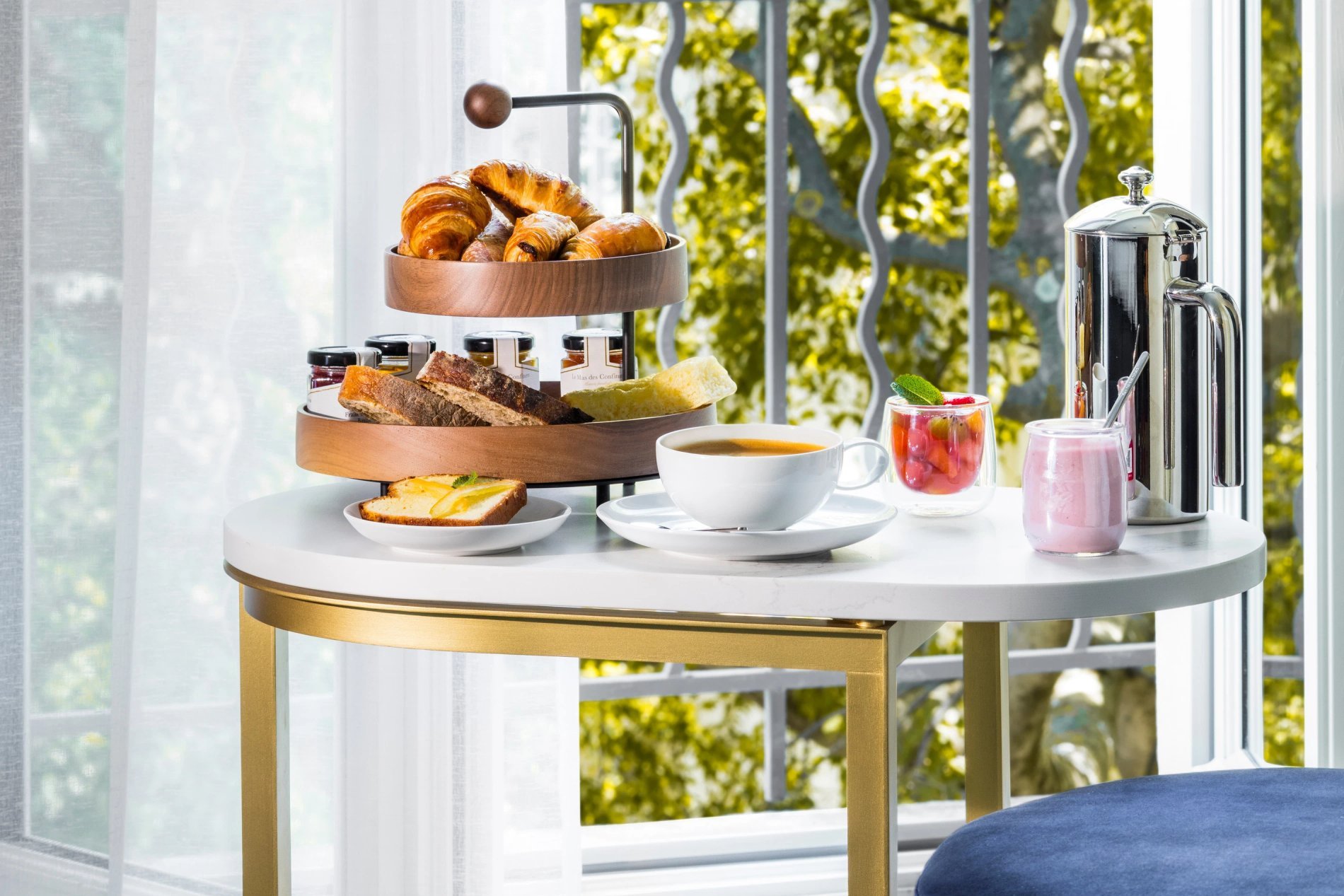 Empiece el día con una nota gourmet en un entorno luminoso y acogedor con vistas al jardín interior, para deleitar su paladar y sus ojos. Disfrute de este momento de placer preparando el desayuno de sus sueños gracias al suntuoso bufé y sus productos excepcionales y preparaciones caseras.
