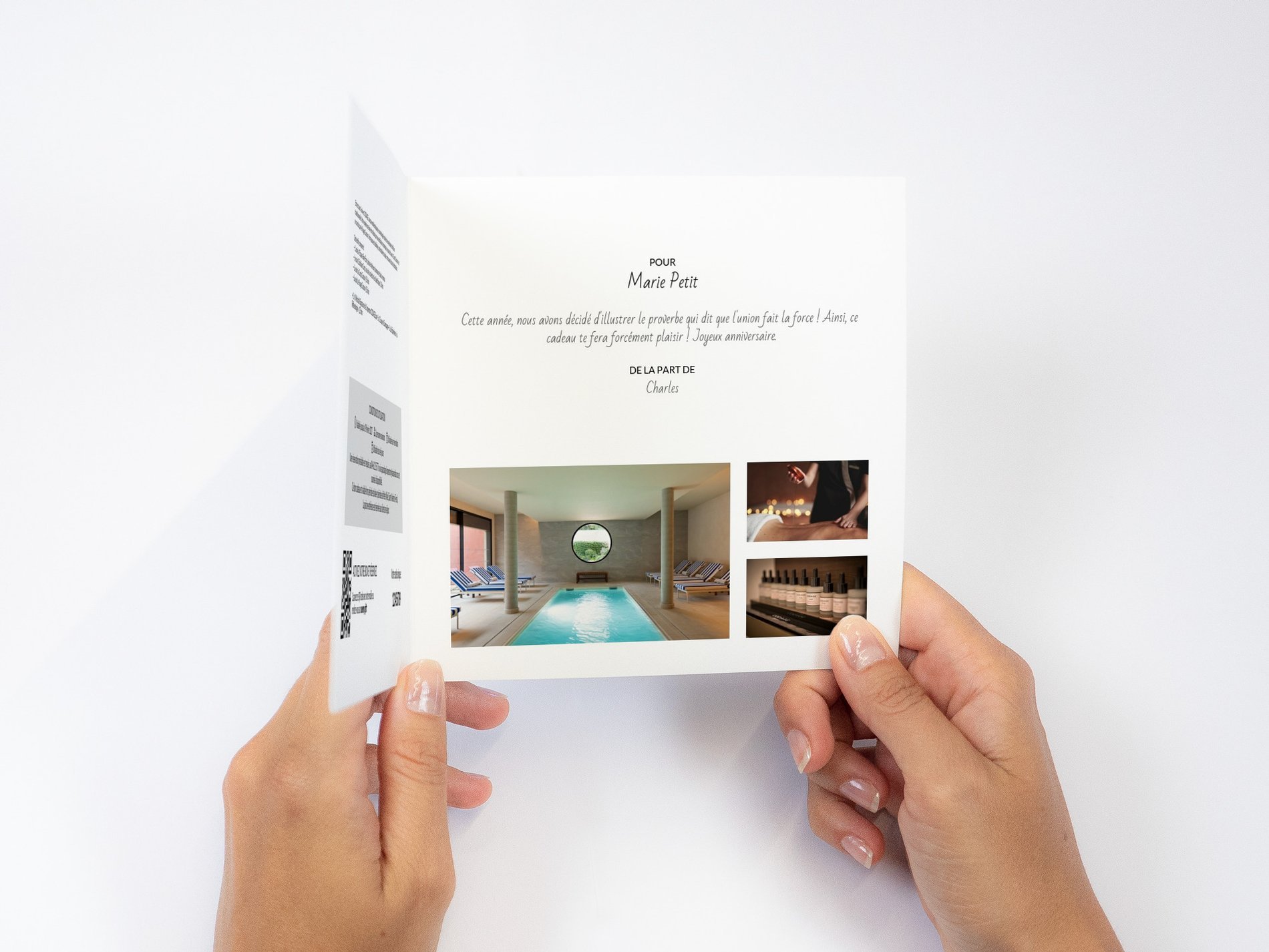 Des bienfaits de l’eau à la chaleur enveloppante du hammam et du bain à remous, en passant par des soins d’exception, chaque moment devient une invitation à la sérénité. Offrez un bon cadeau et faites plaisir à vos proches avec une expérience unique, hors du temps, où détente et raffinement se rencontrent.